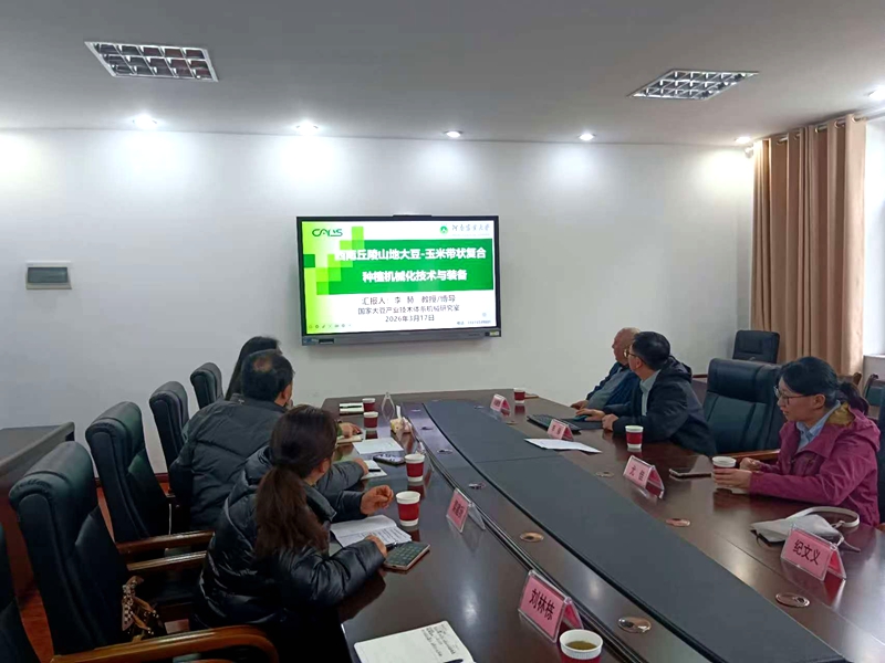 座谈会上,于晓波就四川大豆生产在精量播种、田间管理、高质低损收获相关机械适配性差、极端天气和病虫害频发引起的产量和品质损失等进行了汇报;纪文义研究员从精量播种技术与黏重土壤的适配性、高效低损收获机械的选型与应用等方面开展交流,决定今后将与南充站合作筛选适宜四川地区的大豆播种机械;李赫教授围绕大豆带状复合种植模式下的无人机精准施药防控、机械中耕除草等田间管理环节的机具通用性进行交流,并提出相应解决方案;尤佳副研究员结合南方高温高湿生态特点,针对抗病抗虫品种的快速定向选育路径与我院科研人员展开深入探讨。