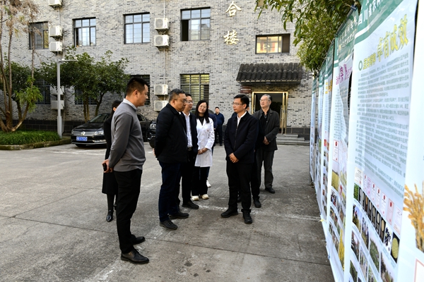 四川省农业厅党组成员李宇飞参观我院成果展板