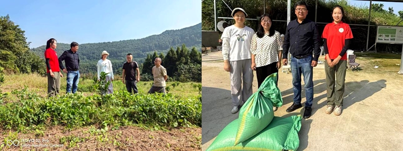 在四川烈风农业有限公司,党员王梅、陈胜荣、梁琴、敬昱霖等与业主一同查看绿肥长势、指导业主果园绿肥管理、及时做好果园套种豌豆播种准备工作,同时赠送南豌7号150斤。