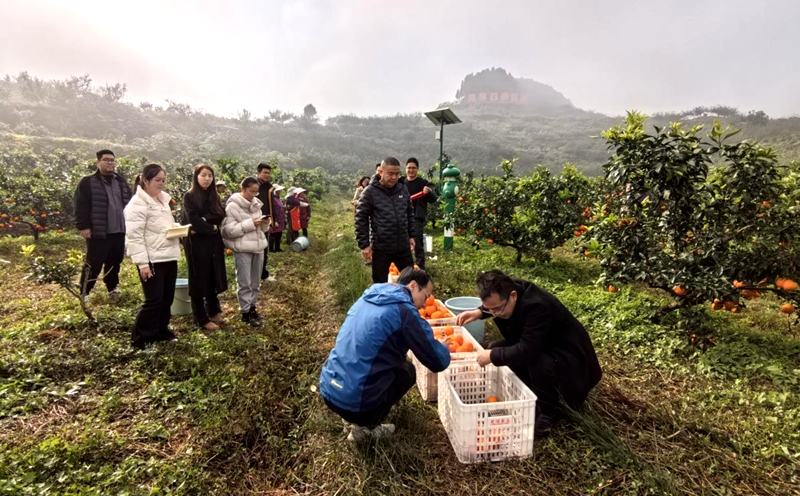 2025年11月20日至21日,由南充市农业科学院举办的“南充市柑橘绿色优质高效关键生产技术观摩会暨2025年现场测产会”,在芦溪试验示范基地、阆中市玲橙专合社等地举行,各示范县业务股长、农技人员、业主代表30余人参会。国家柑橘产业技术体系花果管理岗位科学家淳长品研究员,黄岩综合试验站站长鹿连明研究员、团队成员温明霞研究员、蒲占湑研究员,成都综合试验站站长何建研究员,陕南综合试验站站长敖义俊研究员受邀现场观摩指导,南充市农业科学院党委委员、副院长夏友霖研究员,南充综合试验站站长、果树所所长杨贵川,四川水果创新团队岗位专家陈品文等同志全程陪同。