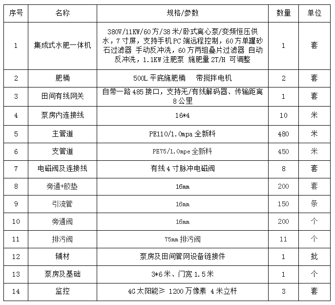 (一)采购名称:水肥一体化系统。