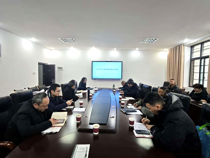1月16日上午,2026年四川省花生新品种试验工作会议在南充市顺利召开。会议由试验主持单位南充市农业科学院主办,来自成都、绵阳、南充、达州、自贡、宜宾、内江等地的花生新品种供种单位、承试单位分管领导、试验负责人及执行人等10余人参会。会议旨在全面总结2025年试验执行情况,系统部署2026年试验任务。