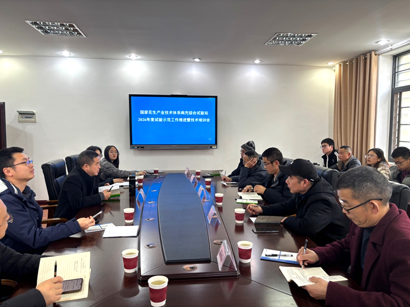 1月16日下午,国家花生产业技术体系南充综合试验站2026年度试验示范工作推进暨技术培训会在南充市顺利召开。来自三台县、营山县、大竹县、资中县、叙州区等示范县及主产县农业农村局分管领导、技术骨干、农技推广人员及种植业主代表共20余人参会。